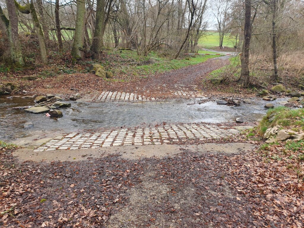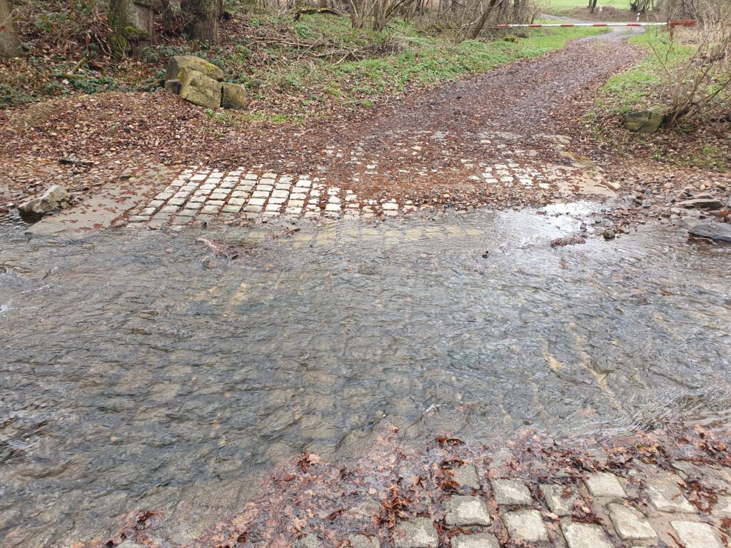 Achtung bei Starken Regen könnte der Bach ansteigen. Bei großen Wohnwagen oder tiefergelegte Fahrzeuge bei durchfahrt durch den Bach geben wir zu bedenken das man möglicherweise aufsetzen. Hierzu ein paar Fotos;